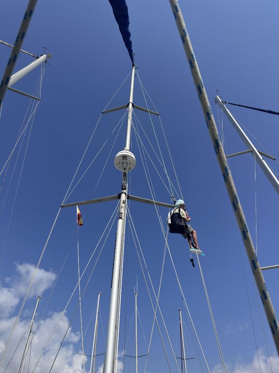 Turns out the Balearics are very busy this time of year. We have a marina hearth by the skin of our teeth - think S who now looks like a proper urchin - helps with the 'please let us stay till we fix our ship'. And it’s not cheap. After making some saving from being at sea for over a week, it’s all now gone on moorings and lifts! But we are right in the old town of Palma which the kids and I have been exploring today. After a morning of cleaning and tidying, including J doing his first mast climb to clean the rig, we hit the parks and back streets of the old town. Testing out the tapas menus, finding the markets. A chance Miro sculpture exhibition. Lots of fun. The laundry run took us to several places which were long closed so when we finally dragged the bags of stinky clothes in to an open laundrette an amazing lady took pity on us and washed it all in super quick time and two super yacht crew who were walking back our way offered to carry our bags. They were from Mexico and the kids told them all about the journey and the boat and how it sails as they were motor superyachties!